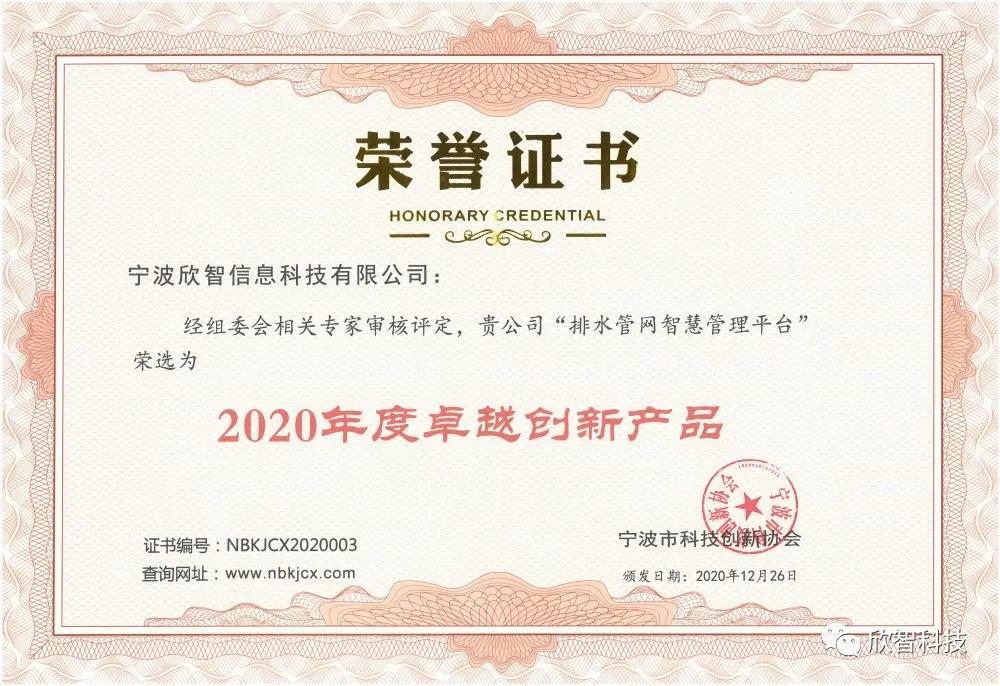 《排水管网智慧管理平台》荣获宁波市科技创新协会2020年度“卓越创新产品”。该平台是基于GIS和物联网技术开发了一套高效实用的排水管网智能管理系统,提供了管线测量、CCTV资料和管网数据入库、三维建模、排水管网运营评估等一系列服务,助力智慧城市管理。该平台在宁波国家高新区和大榭开发区已投入使用,取得了非常好的应用效果,目前正在向宁波全市和其他城市推广。
