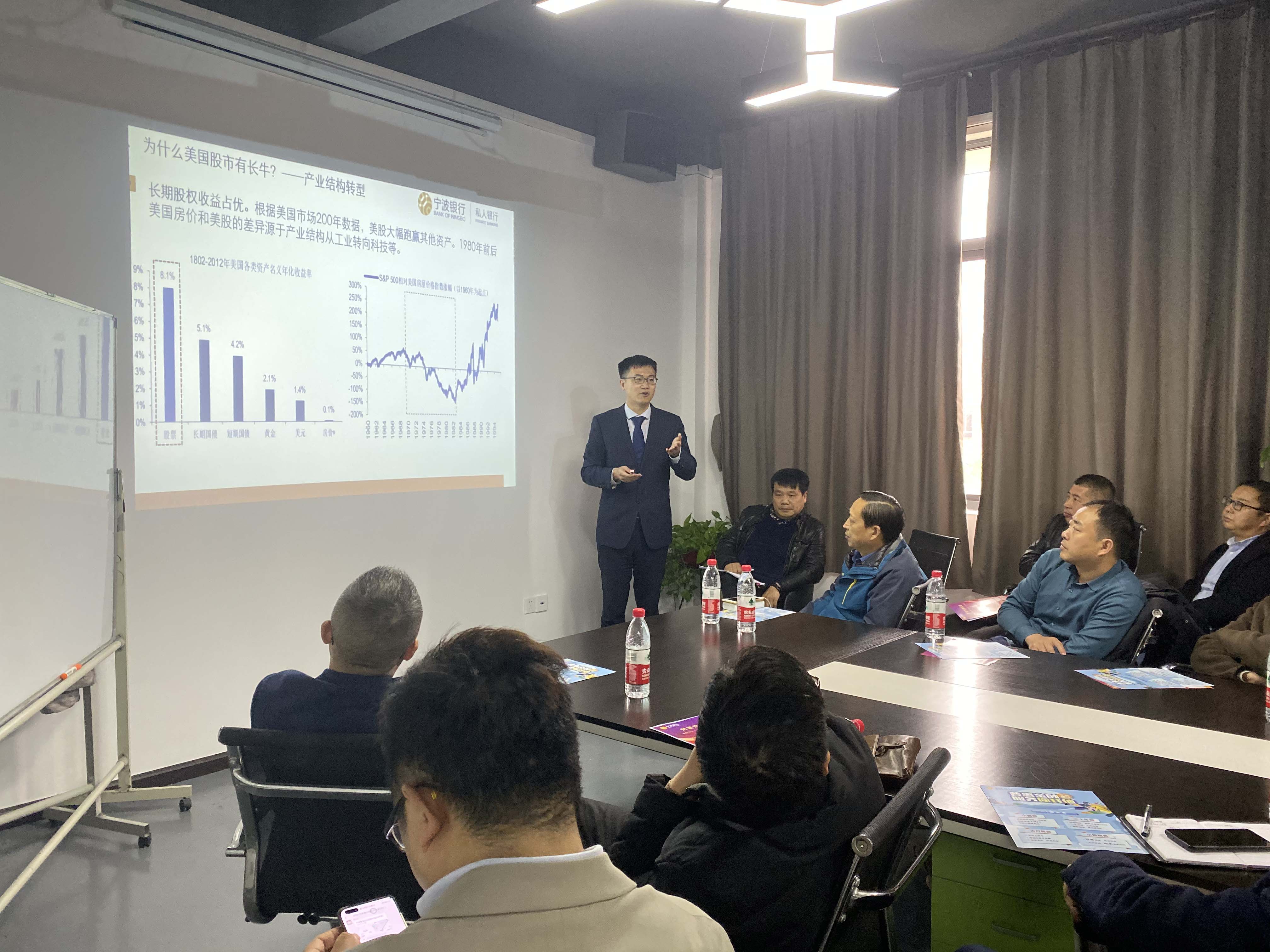 首先,由宁波银行投资顾问谢长龙分享《私银投资策略》,谢老师为大家详细的讲解了目前的权益市场走势、高净值客户如何投资权益市场。提出最恰当的投资应该要认准机构、精选团队;长期持有、穿越牛熊;资产配置、多元策略;逆向投资、稳健收益。